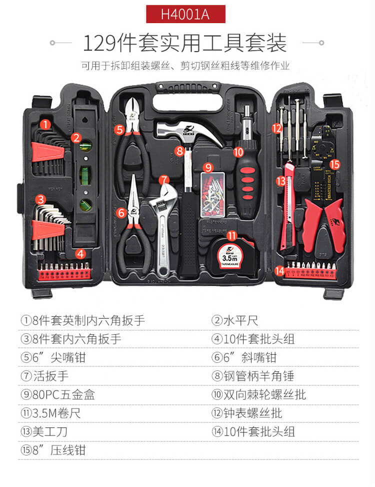 需要,誠心力薦H4001A家用工具套裝。經典的搭配,滿足大眾家庭對基礎工具的需要;獨特的設計,容納更